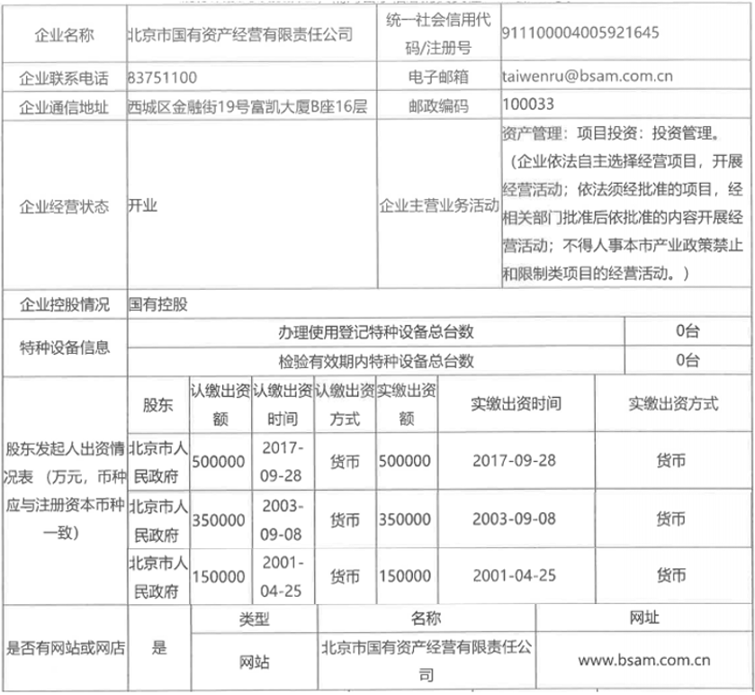 北京國資公司工商信息