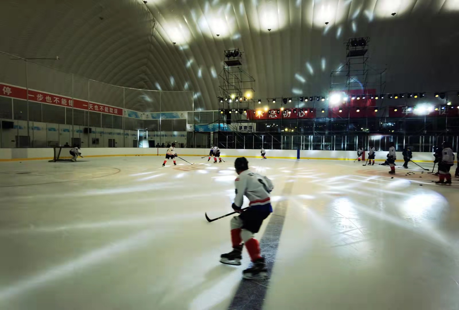 第四期演練參訓(xùn)人員來自各場館體育展示團(tuán)隊(duì),組織者邀請了國內(nèi)專業(yè)運(yùn)動員和裁判員,全流程配合體育展示音頻、視頻、娛樂等要素,模擬賽時場景,檢驗(yàn)各崗位操作,細(xì)化流程串聯(lián)及具體職責(zé)要求。北奧集團(tuán)演練活動負(fù)責(zé)人介紹,較之上半年舉辦的兩次演練,本次演練主要在三方面有了提升:一是在課程設(shè)置上進(jìn)行了優(yōu)化,邀請國內(nèi)冬季運(yùn)動項(xiàng)目知名專家、裁判重點(diǎn)對體育展示場館團(tuán)隊(duì)人員進(jìn)行了分批次、分場館、分項(xiàng)目、有針對性的演練,突出精準(zhǔn)化、科學(xué)化、規(guī)范化;二是模擬賽時體育展示工作的硬件體系架構(gòu),重點(diǎn)對音頻、視頻、娛樂、投影、燈光及人員團(tuán)隊(duì)等要素進(jìn)行了演練,同時針對崗位人員協(xié)同配合工作,進(jìn)一步細(xì)化責(zé)任分工,明確崗位節(jié)點(diǎn)職責(zé),不斷加強(qiáng)流程磨合,突出針對性、實(shí)用性、實(shí)效性,達(dá)到演練預(yù)期效果;三是在疫情防控體系和保障體系兩方面進(jìn)行了全面提升,分區(qū)域、分流線設(shè)置培訓(xùn)地點(diǎn),合理進(jìn)行閉環(huán)管理,為即將到來的北京冬奧會測試賽和北京冬奧會賽時體育展示工作打下堅(jiān)實(shí)基礎(chǔ)。