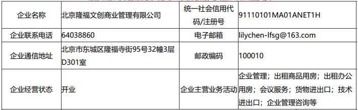 北京隆福文創(chuàng)商業(yè)管理有限公司工商信息