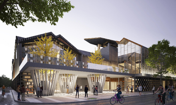 隆福寺園區(qū)定位為“傳統(tǒng)文化與現(xiàn)代文明交相輝映,中華文化與世界文明協(xié)調(diào)共融的首都文化新中心”。核心元素包括:古今隆福、開放首都、國際地標、文化四合。