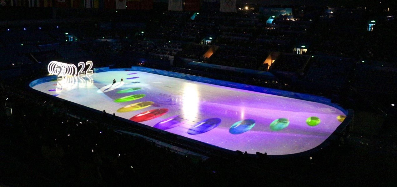 冬奧賽場冰面投影展示“中國精彩”
