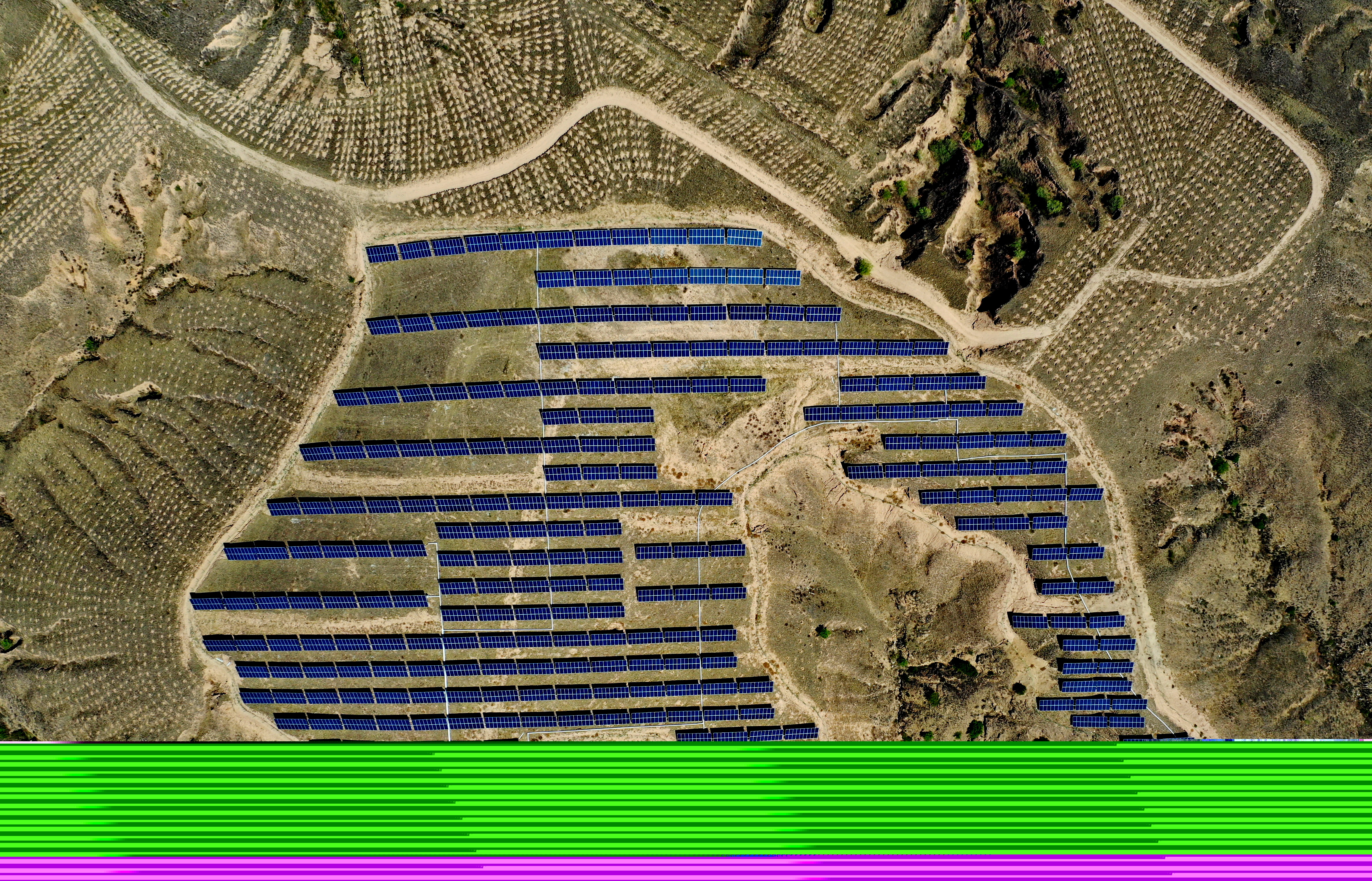 張家口市懷安縣西沙城鄉(xiāng)西沙城村附近荒山上的光伏發(fā)電場。新華社記者楊世堯攝